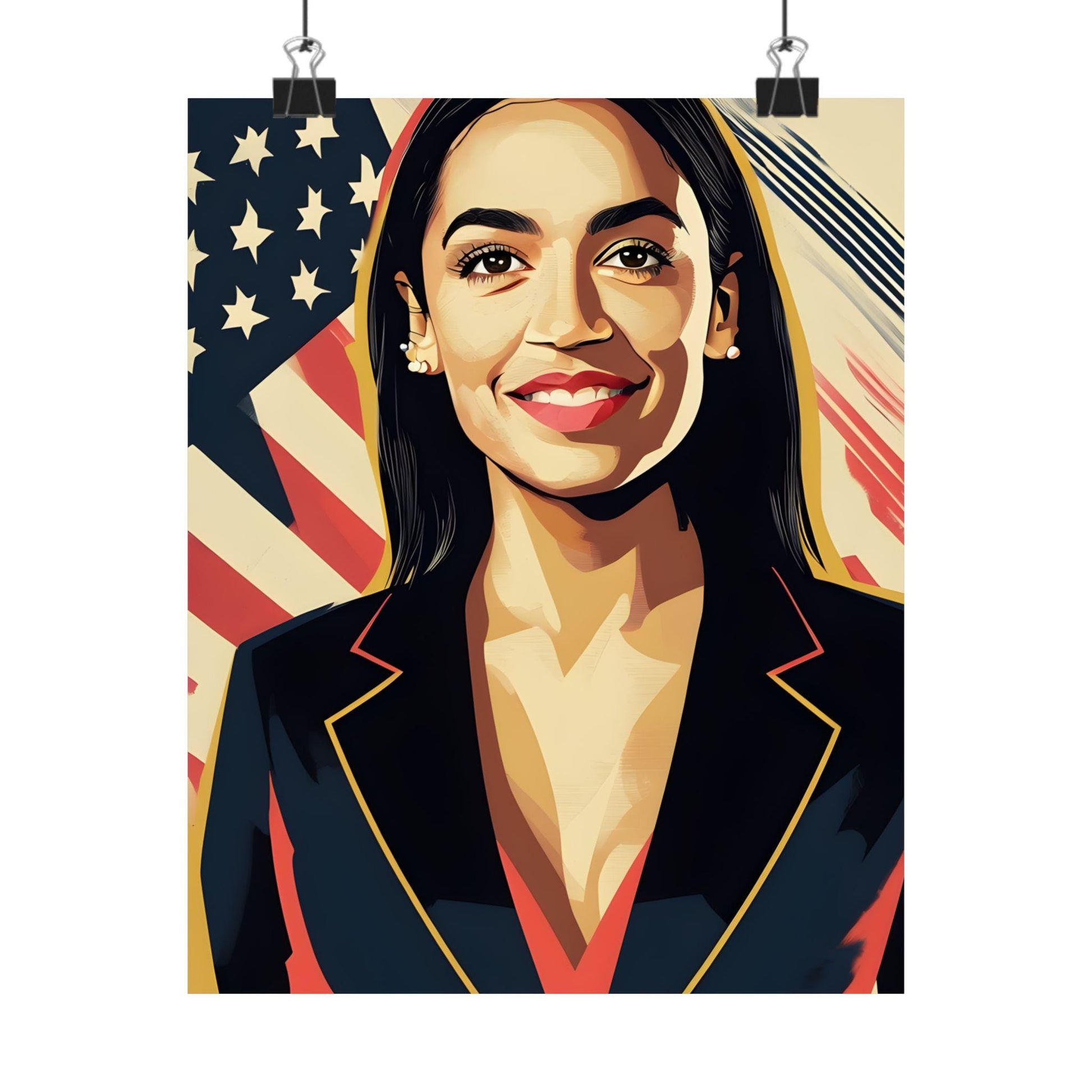 Introducing the perfect addition to your home decor – the premium matte vertical posters featuring an empowering portrait of AOC (Alexandria Ocasio-Cortez). This artwork is perfect for those who admire the activism and leadership of this trailblazing congresswoman. Whether you're looking to make a bold statement in your living room, office, or bedroom, this inspiring wall hanging will bring a touch of style and empowerment to any space.