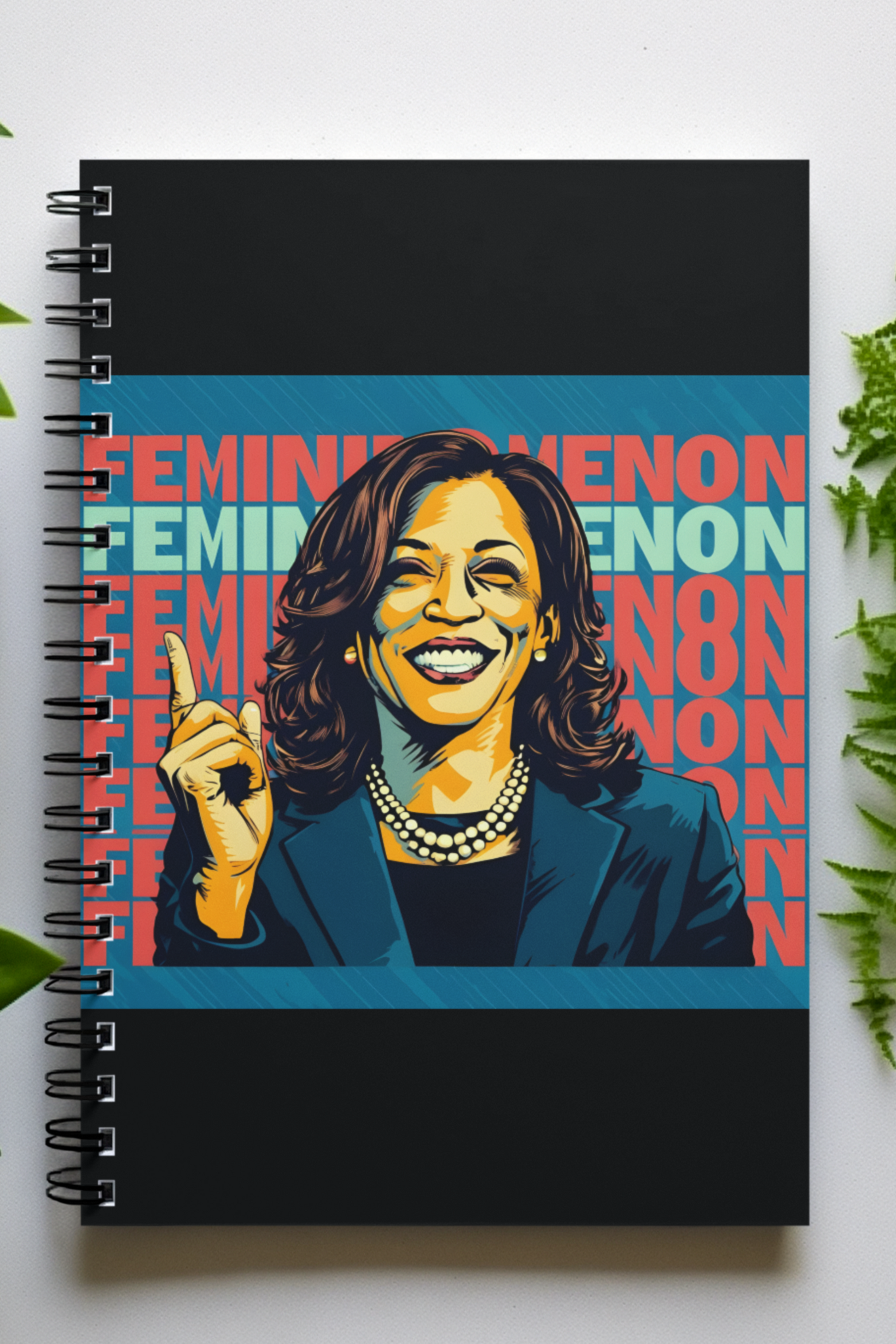 Crafted with high-quality materials, this 6" x 8" notebook is compact yet spacious enough to carry with you everywhere. The front cover prominently features the digital artwork of Kamala Harris, while the dark grey back cover adds a sleek, modern finish. The sturdy metal spiral binding ensures it remains durable, no matter how often you use it. This makes it an ideal choice for teachers, students, writers, or anyone who values bold design and meaningful symbolism.