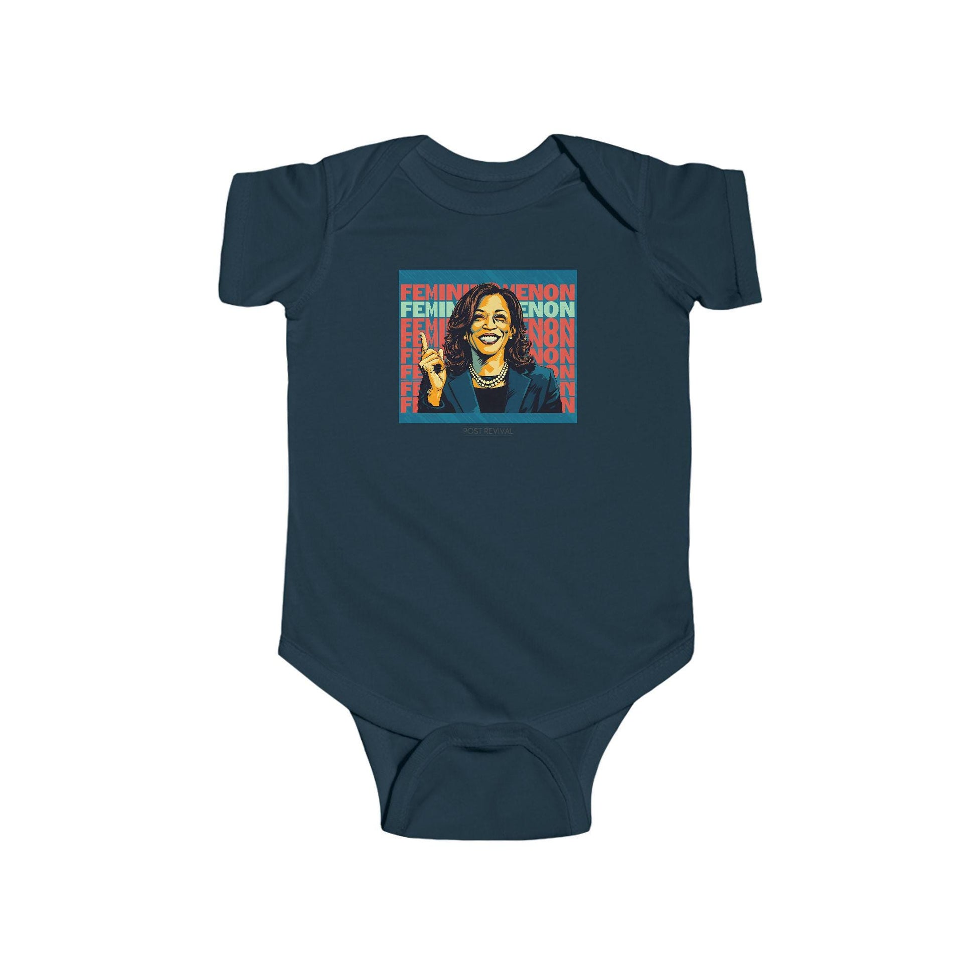 Celebrate the groundbreaking legacy of Kamala Harris with this adorable Kamala Harris Newborn Onesie! Perfect for gifting at a Baby Shower, or as a special treat for your Baby Boy or Baby Girl. This unique design features a sublimation print of the inspiring Kamala Harris, making it not only a stylish piece of baby clothes but also a tribute to a trailblazer in politics and social change.