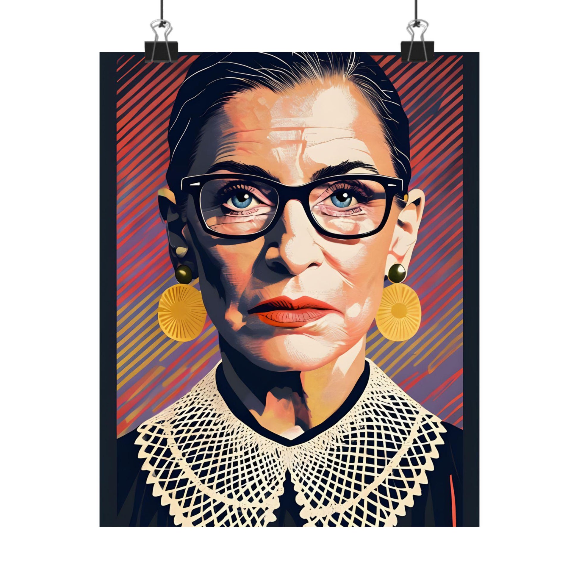 Introducing the perfect addition to your home decor; the premium matte vertical posters featuring an inspiring portrait of Ruth Bader Ginsburg. This artwork is designed for those who admire the legacy of a trailblazing feminist and want to honor her in their space. Whether you're looking for a statement piece in your living room, office, or bedroom, this beautiful and meaningful wall hanging is sure to add a touch of empowerment and style to any room.