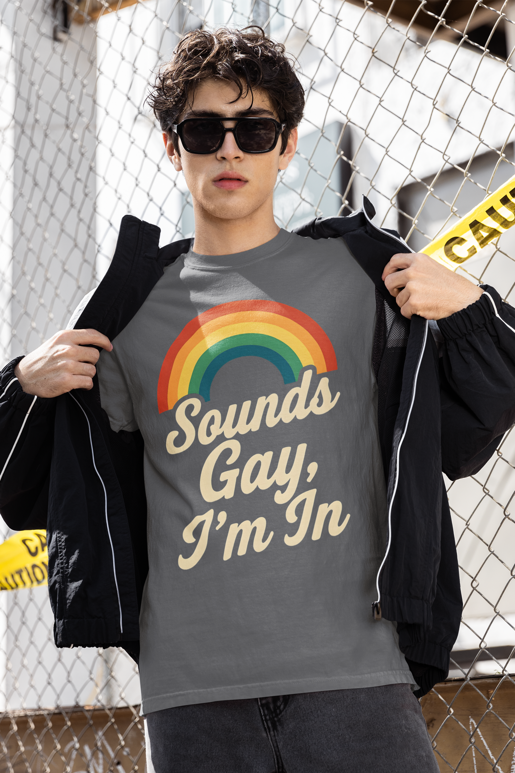 Support queer visibility and celebrate diversity with a tee that proudly says it all: “Sounds Gay, I’m In.”